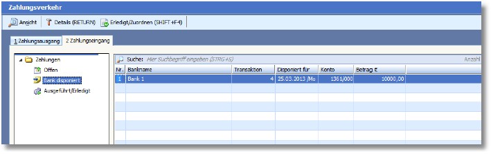 Die Transaktion wurde somit automatisch vom Bereich "Bank disponiert" in "Ausgeführt/Erledigt" verschoben: