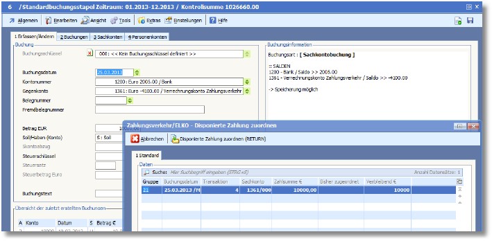 Aufgrund des aktivierten Zugriffsrechts kann in der Buchungserfassung die Transaktion zugeordnet werden: