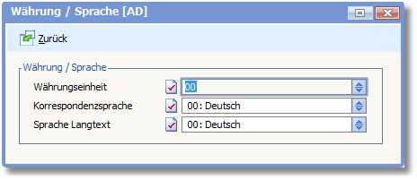 << Hier KLicken um eine Inhaltsübersicht anzuzeigen >> Navigation: OfficePlaner > Stammdaten > Basisdaten > Länderverwaltung > Länder erfassen/ändern > Die Karteikarte "Standard" > Währung/Sprache |