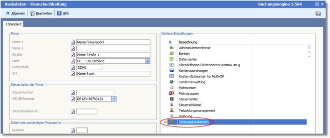 2. Im Bereich "Weitere Einstellungen" doppelklicken Sie nun auf den Eintrag "Zahlungskonditionen".
