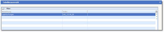 3. Wählen Sie eine Tabelle aus und bestätigen Sie Ihre Auswahl mit [RETURN] oder mit einem Mausklick auf den Button <Zeile auswählen>.