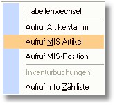 3. Klicken Sie mit der Maus auf "Aufruf MIS-Artikel".