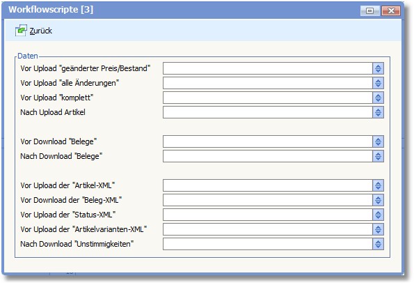 << Hier KLicken um eine Inhaltsübersicht anzuzeigen >> Navigation: Warenwirtschaft > Extras > Shopmanager > Marketplaces > emMida > Marketplace verwalten > Workflowscripte |