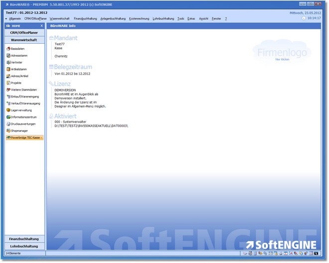1. Wählen Sie den Menüeintrag "Warenwitschaft > Extras > TEC - Kassenschnittstelle".