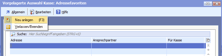 Die Adressfavoriten bieten die Möglichkeit, global und kassenbezogen Adressfavoriten zu definieren.