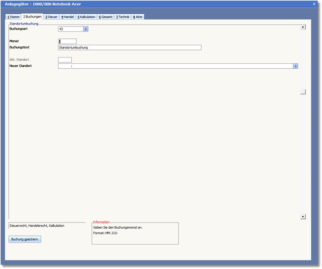 Eingetragen wird der Zeitpunkt in Form vom Monat.Jahr [MM.JJJJ] ab dem die neue Kostenstelle für das gewählte Anlagegut gültig ist.
