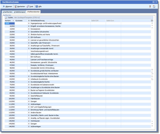In dieser Karteikarte ist der Referenzkontenrahmen hinterlegt, der vom Anwender nicht geändert werden darf.