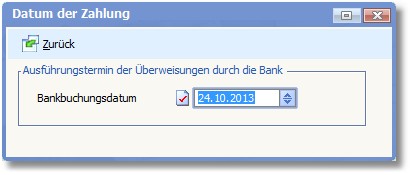 Tragen Sie hier das Datum ein, wann die Überweisungen durch die Bank ausgeführt werden sollen. Es wird vom Programm automatisch das Tagesdatum vorgeschlagen. Mit [F5] können Sie hier den Kalender öffnen, um einen anderen Tag auszuwählen.