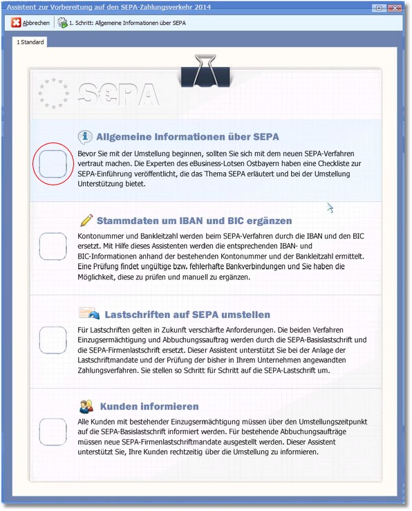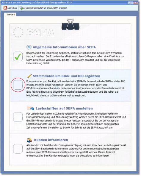 Assistent zur Vorbereitung auf den SEPA-Zahlungsverkehr 2014