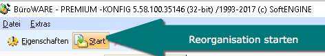Markieren Sie dazu die gewünschte Reorganisation und klicken Sie dann mit der Maus den Button "Start".