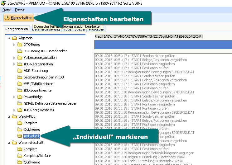 Nun zuerst die IDB-Reorganisation und danach die WAWI-FIBU-Komplettreorganisation starten.