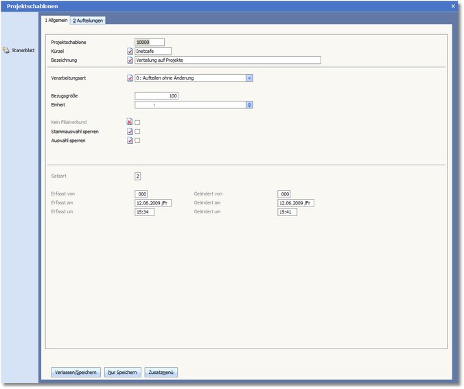 Wenn Sie diese Option aktivieren, kommt die Projektschablone nicht in den Filialverbund, d.h. diese wird beim Austausch Filiale/Zentrale und umgekehrt nicht berücksichtigt.