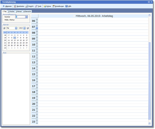 Diese Übersicht zeigt für den ausgewählten Mitarbeiter die Terminübersicht das aktuellen Tages an.
