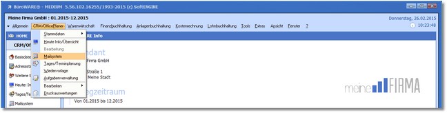 1. Klicken Sie mit der Maus im Hauptmenü auf "CRM/OfficePlaner > Mailsystem".
