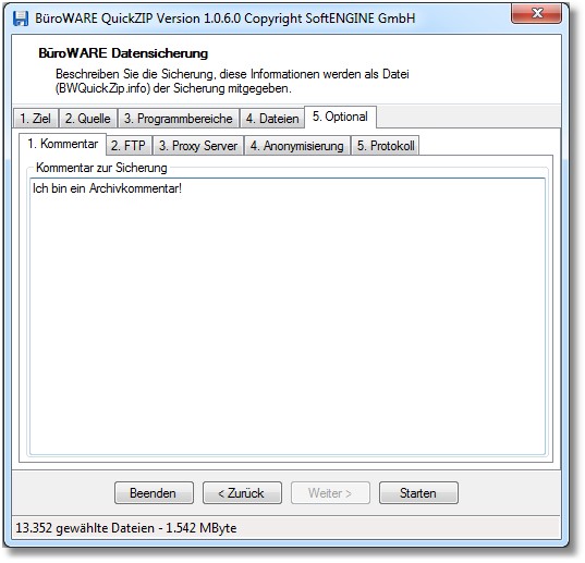 Navigation: Tools > Weitere Tools > BWQuickZip > Optionale Einstellungen >