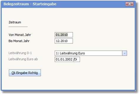 3. Wenn die vom Programm vorgegebenen Daten korrekt sind, bestätigen Sie mit Klick auf den Button <OK Eingabe Richtig> .