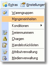 1. Klicken Sie im Artikelstamm auf "Extras > Mengeneinheiten".