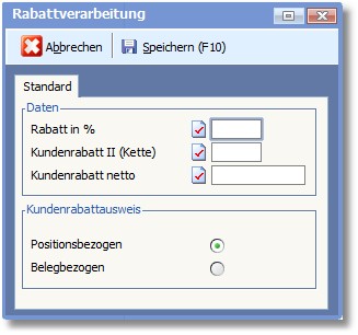 Der hier eingetragene Wert ist der Vorgabewert für das zweite Rabattfeld in der Position.