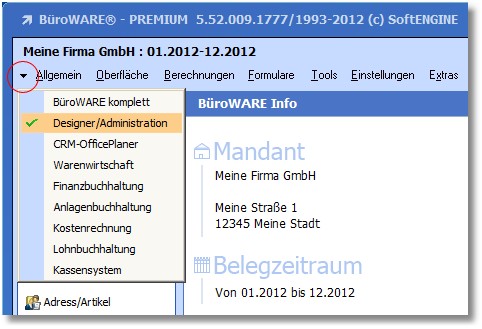 1. Rufen Sie den Designer über die Combo Box des Front Office auf.