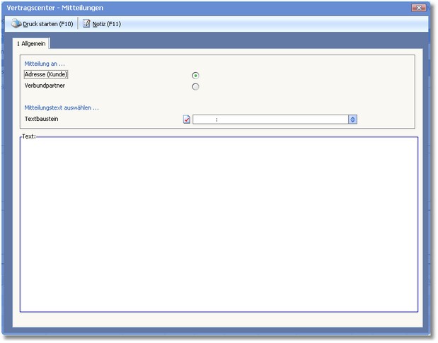 Kunden oder Verbundpartnern können Sie Mitteilungen versenden. Das zu verwendende Formular (FMTFAAUS.nnn) ist dabei mit der Programmnummer des Formulars an den Textbaustein geknüpft. Sie können über die