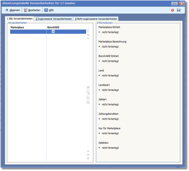 Hier wird die Zuweisung der Versandeinheiten in der BüroWARE angezeigt.