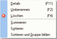 Bei Textfeldern wird die Funktion "Summieren" nicht angeboten und bleibt inaktiv.