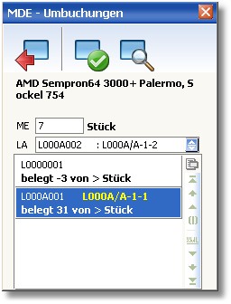 << Hier KLicken um eine Inhaltsübersicht anzuzeigen >> Navigation: Warenwirtschaft > Lagerverwaltung > Lager/Logistikcenter > Mobile Datenerfassung (MDE) > Lagerumbuchung |