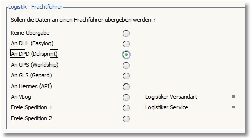 Der Bereich "DPD Versandart"