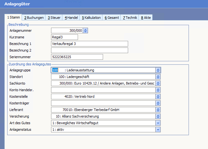 Das Wirtschaftgut wird mit der Stammdaten/Maske angezeigt.