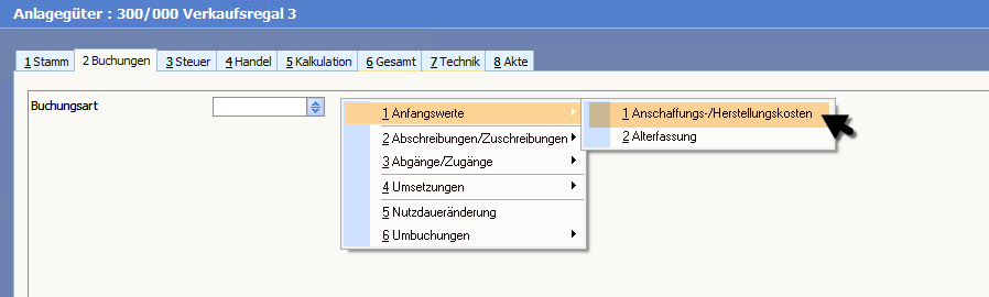 Navigation:  Anlagenbuchhaltung > Buchungen >