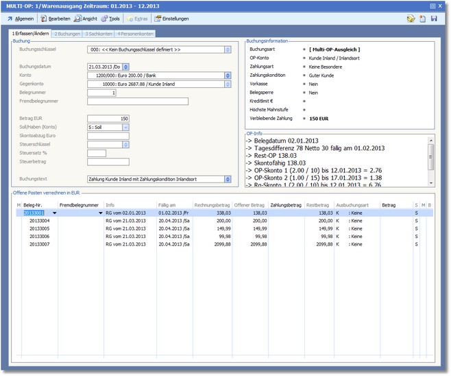 Zahlungen für mehrere Ops können mit dem Multi-OP-Ausgleich mit einem Mal vorgenommen werden (Sammelzahlungen).