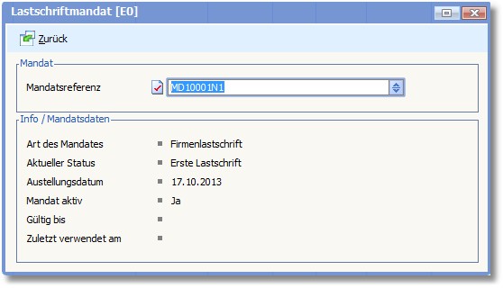 Mit der Funktionstaste [F5] wird die Mandatsverwaltung für den Kunden geöffnet. Hier können Sie dann die für den Kunden hinterlegten SEPA-Mandate bearbeiten und ggf. neue Mandate erfassen.