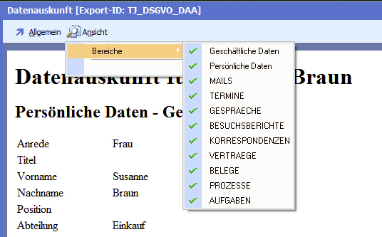 << Hier KLicken um eine Inhaltsübersicht anzuzeigen >> Navigation: DSGVO und BüroWARE > Das DSGVO Center > Datenauskunft |
