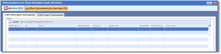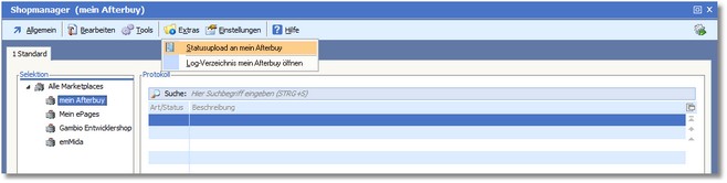 << Hier KLicken um eine Inhaltsübersicht anzuzeigen >> Navigation: Warenwirtschaft > Extras > Shopmanager > Marketplaces > Afterbuy > Statusupload > Start des manuellen Uploads |