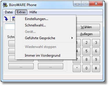 << Hier KLicken um eine Inhaltsübersicht anzuzeigen >> Navigation: CRM/OfficePlaner > Telekommunikation/BüroWARE Phone > Oberfläche und Bedienung > Das Menü |