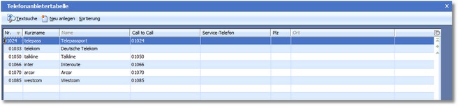 Innerhalb des CRM/OfficePlaners sind mehrere Telefonanbieter gespeichert, über die Sie Ihre Telefongespräche abwickeln können. Diese können in der Tabelle „Telefonanbieter" ergänzt oder gepflegt werden.