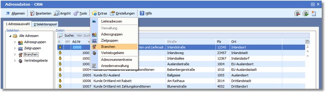 1. In der Adressauswahltabelle klicken Sie im Menü auf "Extras > Vertriebsgebiete".