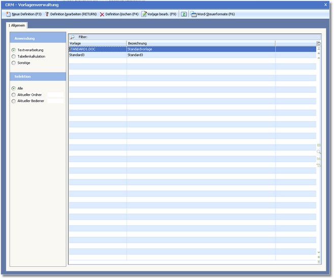 In der Vorlagenverwaltung können neue Vorlagen erstellt bzw. bereits vorhandene Vorlagen bearbeitet werden.