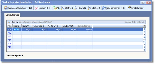 Mit diesem Button wird die Tabelle zur Bearbeitung der Verkaufspreise 1-6 geöffnet.