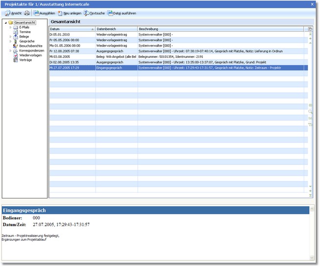 Das Programm öffnet den Dialog "Projektakte".