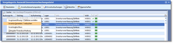 1. Klicken Sie mit der rechten Maustaste in die Tabelle und gehen Sie im Kontextmenü auf den Menüpunkt "Inventur bewerten/verbuchen“, oder klicken Sie mit der linken Maustaste auf den Symbolbutton <Bearbeiten>.