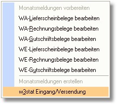 2. Im Auswahlmenü klicken Sie mit der Maus auf den Eintrag "w3stat Eingang/Versendung".
