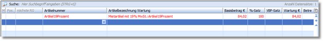 Angezeigt wird die Artikelbezeichnung des Wartungs-/Mietartikels.