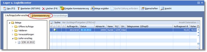 Wenn bereits frei gegebene Liefervorschläge vorhanden sind, öffnet das Programm nun den Kommissionierungsdialog im Lager- und Logistikcenter.